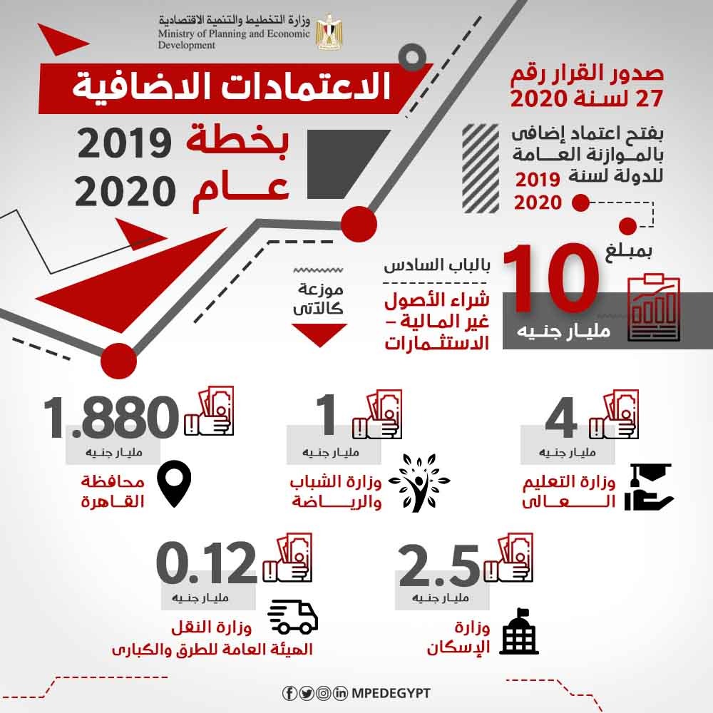 وفي هذا الإطار، أشارت الدكتورة هالة السعيد وزيرة التخطيط والتنمية الاقتصادية إلى صدور القرار رقم 27 لسنة 2020 بفتح اعتماد إضافي بالموازنة العامة للدولة للسنة المالية 2019/2020 بمبلغ 10 مليار جنيه بالباب السادس “شراء الأصول غير المالية ــ الاستثمارات”، لتحفيز النشاط الاقتصادي والحد من الآثار السلبية الناتجة عن انتشار فيروس كورونا وزيادة معدلات التشغيل بشكل مباشر، من خلال سداد مستحقات الشركات والمقاولين وبما يعمل على زيادة السيولة المالية ويتيح الفرصة لسداد مستحقات وأجور العاملين.