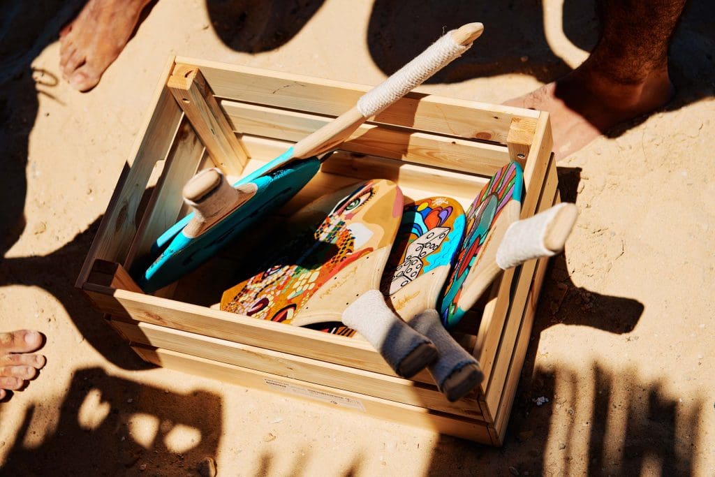 وعبر شباب الفنانين في رسوماتهم ورؤاهم الفنية الفريدة على القطع الخشبية لتظهر بشكل خلاب يضم تشكيلة محدودة ومتميزة مكونة من 40 مضرباً تحمل رسومات وأشكال تعبر عن بهجة الصيف في مجموعة متنوعة من الأشكال والألوان. وتم افتتاح مزاد عبر الإنترنت حيث تم في البداية عرض مجموعة منتقاة من التصميمات والرسومات المميزة على مضارب الراكيت وتم تخصيص جميع أرباح المزاد لدعم الفنانين الشباب في مشوارهم الفني. وجاءت القطع الفنية الخشبية وهي تحمل على وجهيها رسومات تعبر عن ذكريات مبهجة وحنين إلى الماضي، مع مجموعة أخرى حملت رسوماً وتعبيرات لجوه في حالات تعبيرية مختلفة تعبر عن الحالات المزاجية المختلفة التي يمر بها الإنسان في جميع مراحل حياته اليومية وخاصة في فصل الصيف. وعلق الفنان اَسر ياسين مؤسس أرانزاد الإبداعي قائلاً: “إن مضارب الراكيت الخشبية تعتبر أداة صيفية أساسية لواحدة من أكثر الرياضات شعبية على الشاطئ، ولذلك رأينا أن هذا هو أفضل وقت لنا لإنتاج فيلمنا الصيفي “Lumiere”، والذي تم تصويره في Lumiere Beach بواسطة M Squared Development لتقديم المضارب النابضة بالحياة بكل أنواعها وأشكالها في جو شاطئي مليء بأجواء الصيف والمرح”.