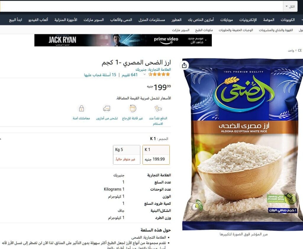 فاجأت أمازون مصر المنصة المتخصصة للتجارة الإلكترونية في السوق المصرية عملائها بطرح أنواع متداولة من الأرز والسكر بأسعار صادمة للغاية وخيالية إذا طرحت عبر منصتها الإلكترونية كيلو الأرز بقيمة 199 جنيه ، ونصف كيلو السكر من نفس النوع بقيمة 60 جنيه.