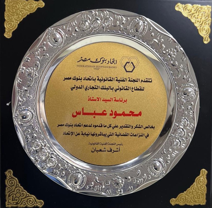 وقد جرى التكريم خلال اجتماع اللجنة الفنية القانونية لاتحاد بنوك مصر، بحضور الأستاذ/ محمد شعبان – وكيل محافظ البنك المركزي المصري، والأستاذ/ أشرف شعبان – المستشار القانوني للاتحاد، وعدد من كبار مسؤولي القطاعات القانونية بالبنوك.