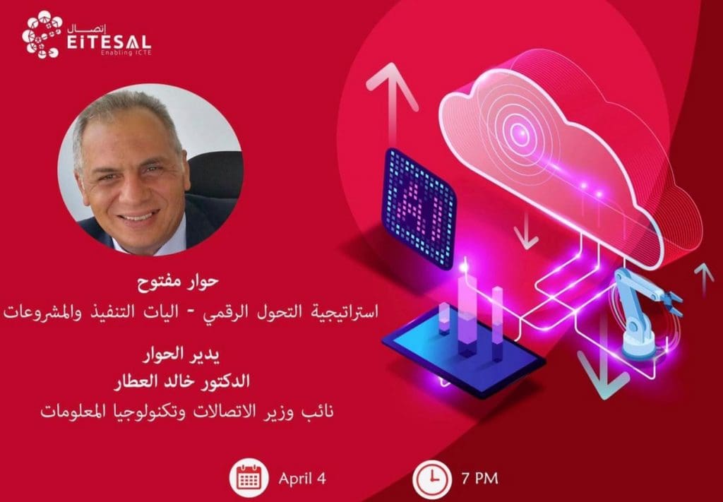 تستضيف منظمة اتصال “نواة منظمات المجتمع المدني لصناعة الاتصالات وتكنولوجيا المعلومات” الاحد المقبل الموافق الرابع من ابريل المهندس خالد العطار نائب وزير الاتصالات وتكنولوجيا المعلومات في حوار مفتوح حول استراتيجية التحول الرقمي- آليات التنفيذ والمشروعات عبر تقنية الفيديو كونفرانس.