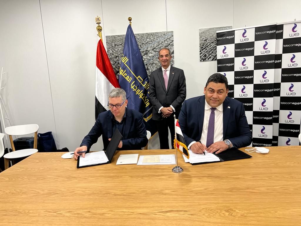 وقع الاتفاقية المهندس عادل حامد العضو المنتدب والرئيس التنفيذى للشركة المصرية للاتصالات، ونورمان ألبى الرئيس التنفيذى لشركة أفريكس تيليكوم وميدوسا، وذلك على هامش فعاليات المعرض والمؤتمر الدولى للهواتف المحمولة الذى يعقد فى برشلونة بأسبانيا.