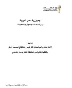 طرحت اليوم وزارة الاتصالات وتكنولوجيا المعلومات رسميا كراسة الاشتراطات والمواصفات للترخيص بالانتفاع لمساحة أرض بالقطعة الثانية من المنطقة التكنولوجية بالمعادي وحصلت ICTBusiness على نسخة الكترونية منها وبلغ سعرها 300 جنيه في 15 ورقة شملت تمهيد عن المناقصة والغرض من الطرح ووصف الموقع والشروط المالية وغيرها من المحددات.