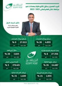 وأوضح الدكتور شريف فاروق رئيس مجلس إدارة الهيئة القومية للبريد: إن الهيئة حققت نجاحًا ملحوظًا خلال العامين الماضيين على جميع المستويات من حيث جودة الخدمات وتنوعها والانتشار الجغرافي الواسع لمكاتب البريد إلى جانب سيارات البريد المتنقلة والأكشاك البريدية، بما ساهم في تسهيل حصول المواطنين على الخدمات، وذلك بعد تنفيذ خطة إستراتيجية شاملة بهدف إحداث نقلة نوعية بجميع القطاعات والخدمات، بدعم مستمر من الدكتور عمرو طلعت وزير الاتصالات وتكنولوجيا المعلومات، مشيرًا إلى أن هذا الإنجاز الاستثنائي الذي تم تحقيقه يعد طفرة في أداء البريد المصري ومؤشراته رغم جميع التحديات؛ حيث إن الهيئة حققت 3 مليارات و 825مليون جنيه صافي أرباح بمعدل نمو لصافي الربح وصل إلى 20٪ بإجمالي إيرادات للخدمات يصل إلى 4مليارات جنيه بمعدل نمو 20٪ وبلغت إيداعات صندوق التوفير 278 مليار و400 مليون جنيه.