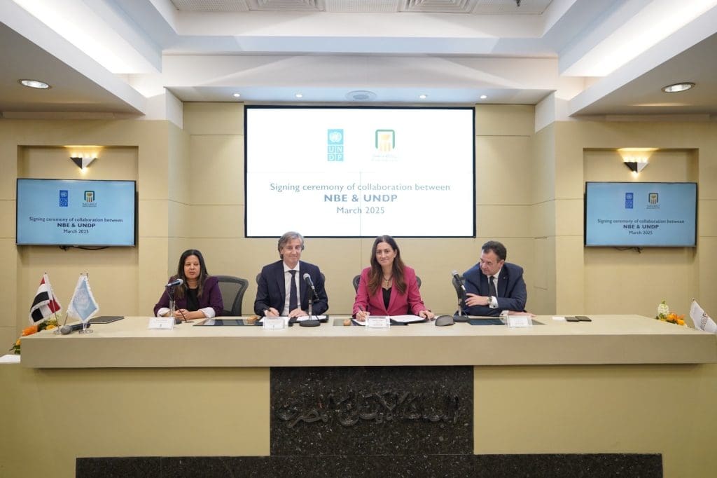 وقع البنك الأهلي المصري وبرنامج الأمم المتحدة الإنمائي مذكرة تفاهم تستهدف تعزيز التعاون في مجالات التمويل المستدام، من خلال تقديم حلول مبتكره تساهم في تقديم الخدمات المصرفية (المالية وغير المالية) ودعم المشروعات الخضراء ذات الأهداف المستدامة.