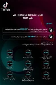 أضافت “فرح طوقان” أن “تيك توك” حريص على تبني مبدأ الشفافية لاطلاع الجمهور على الخطوات التي يتخذها دائما للحفاظ على الأمان عبر المنصة، لذلك يسلط تقرير الشفافية للربع الأول من عام 2021 الضوء على بعض الأنشطة والمبادرات الرئيسية التي انجزناها منذ بداية العام حتى الآن ويشرحها؛ لضمان أن تكون تجربة المستخدم آمنة، أضاف :”نحرص على العمل باستمرار من أجل خلق بيئة متناغمة وممتعا، وخلال الربع الماضي تم تعزيز العديد من ميزات الأمان وتعاوننا مع المنظمات الإقليمية لتعزيز النظام البيئي عبر الإنترنت بالكامل، بما في ذلك اليونيسف لمكافحة التنمر عبر الإنترنت، في النهاية، سنستمر في توفير مكان لمنشئي المحتوى ليشعروا فيه بالأمان ويستمتعوا باستهلاك المحتوى ومشاركته” .
