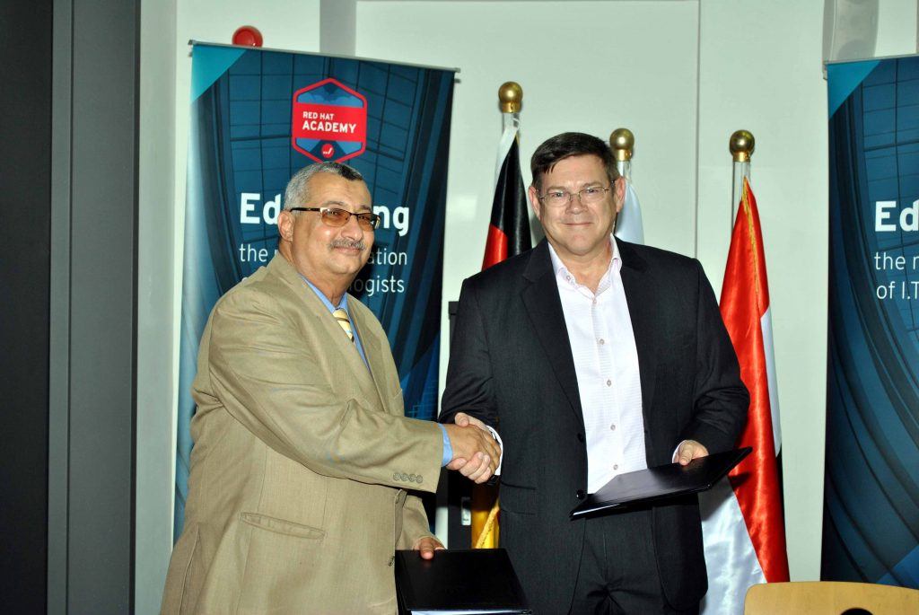 وقعت “الجامعة الألمانية” بالقاهرة بروتوكولًا للتعاون مع شركة ريد هات المتخصصة فى مجال البرامج المفتوحه المصدر لتدشين “أكاديمية ريد هات ” بالجامعة والتي تعد منصة تعليمية مفتوحة المصدر يتم إدارتها ونشرها عبر شبكة الإنترنت لتوفير محتوى تعليمى متطور و محفز على الابتكار و الابداع داخل المؤسسات الأكاديمية لزياده القدرات التنافسيه للشباب بسوق العمل .