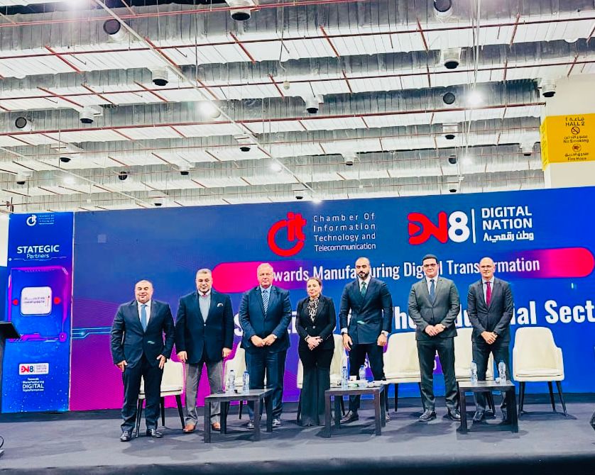 جاء ذلك خلال الجلسة الافتتاحية لفاعليات الدورة الثامنة لمؤتمر ” وطن رقمي ” ، والمقام حاليا تحت عنوان: “نحو نهضة صناعية رقمية” ، بمشاركة 40 شركة للتكنولوجيا تستعرض حلول التصنيع الذكي الذي تزامن مع الملتقى والمعرض الدولي السنوي للصناعة قام بإدارتها الدكتور خالد عبد العظيم، المدير التنفيذي لاتحاد الصناعات المصرية والتي تتضمن كل من المهندس خالد إبراهيم، رئيس غرفة صناعة تكنولوجيا المعلومات والاتصالات باتحاد الصناعات “CIT”، والمهندس محمد الزمر، مدير المبيعات الإقليمي لحلول منصة التخزين لمنطقة الشرق الأوسط وتركيا وأفريقيا في شركة ” دِل تكنولوجيز “، وأحمد علاء، المدير الإقليمي بتريند مايكرو، والمهندس محمود سفراطه مدير قطاع تطوير الاسواق فى هيئة تنمية صناعة تكنولوجيا المعلومات ” ايتيدا ” ، والمهندس محمد جمال نائب رئيس غرفة الصناعات الهندسية باتحاد الصناعات .
