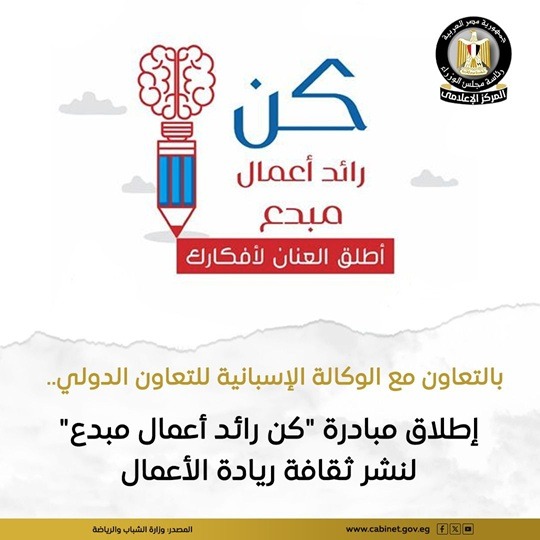 أطلقت وزارة الشباب والرياضة مبادرة “كن رائد أعمال مبدع” وهي مبادرة قومية تهدف إلى دعم الطاقات الشبابية، ونشر ثقافة ريادة الأعمال، من خلال برنامج تدريبي وتنافسي متكامل مصمم بهدف تحويل أفكار الشباب لمشروعات ناجحة على أرض الواقع.