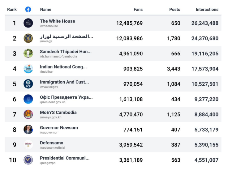 وجاءت صفحة وزارة الداخلية المصرية مباشرة بعد صفحة البيت الأبيض التي تصدرت التصنيف، لتصبح بذلك ثاني أكثر الصفحات الحكومية تأثيرًا وتفاعلًا على مستوى العالم، وأبرز صفحة رسمية في الشرق الأوسط وإفريقيا من حيث الانتشار، معدلات الوصول، وقوة التفاعل مع الجمهور.