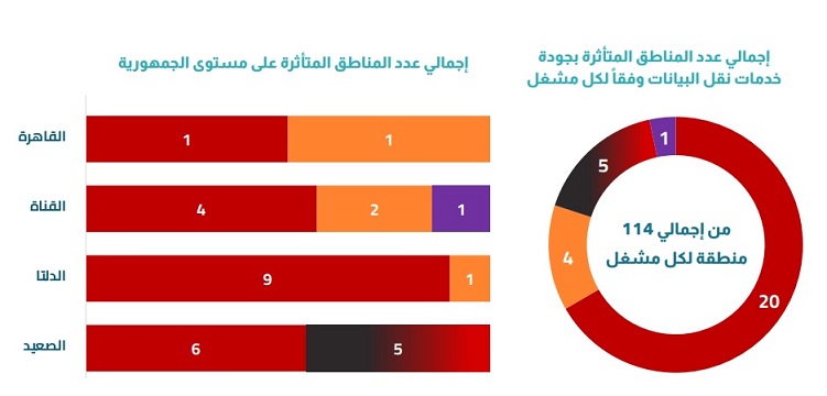 وأوضح التقرير الذي حصلت عليه ICTBusiness أن القاهرة كانت من المناطق التي تأثرت سلبا لدى فودافون و اورنج فقط ، بينما مدن القناة تاثرت فيها 4 مناطق تابعة لفودافون و منطقتان تابعتان لاورنج ومنطقة واحدة تابعة لشركة وي وفي الدلتا كانت هناك 9 مناطق متأثرة تابعة لشركة فودافون ومنطقة واحدة متاثرة تابعة لشركة اورنج وفي الصعيد كانت عدد المناطق 6 مناطق تابعين لشركة فودافون و5 مناطق تابعين لشركة اتصالات مصر .
