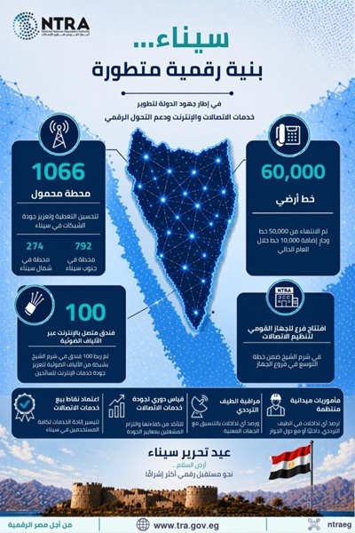 وتعكس هذه الخطوات التزام مصر بتعزيز مكانتها كمركز إقليمي للاتصالات وتكنولوجيا المعلومات، ودعم جهود التنمية في المناطق الاستراتيجية، تزامنًا مع الاحتفال بذكرى تحرير سيناء، نحو مستقبل رقمي أكثر تكاملًا.