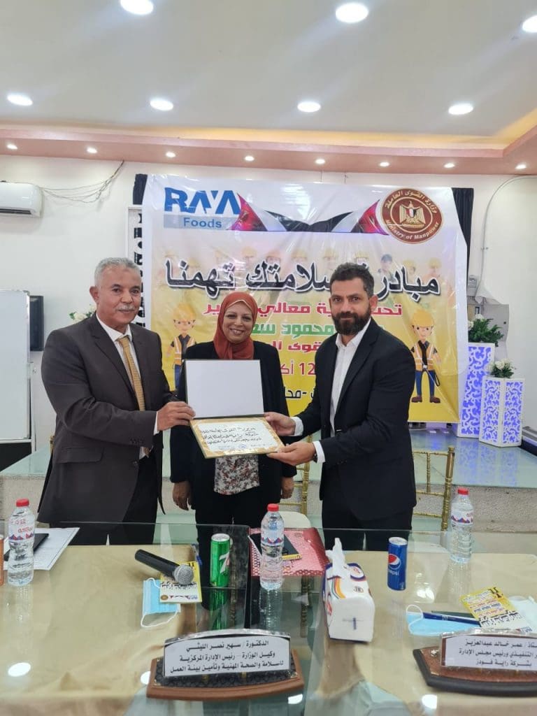 وفي كلمته، قال عبد العزيز إن “شركة راية فودز تضع السلامة والصحة المهنية وتأمين بيئة العمل في صدارة اهتماماتها منذ انطلاقها في عام 2017، ويظل ذلك أحد ركائز نمو راية فودز إلى أن صارت إحدى أكبر اللاعبين في الصناعات الغذائية وتتربع على عرش مصدّري الخضراوات والفاكهة. ونشكر وزارة القوى العاملة على دعمها وتكريمها، فهذا ليس التكريم الأول، إذ توجت راية بين أبرز الشركات البارزة في تدابير السلامة المهنية على مدار السنوات المتعاقبة الأخيرة منذ عام 2017”.