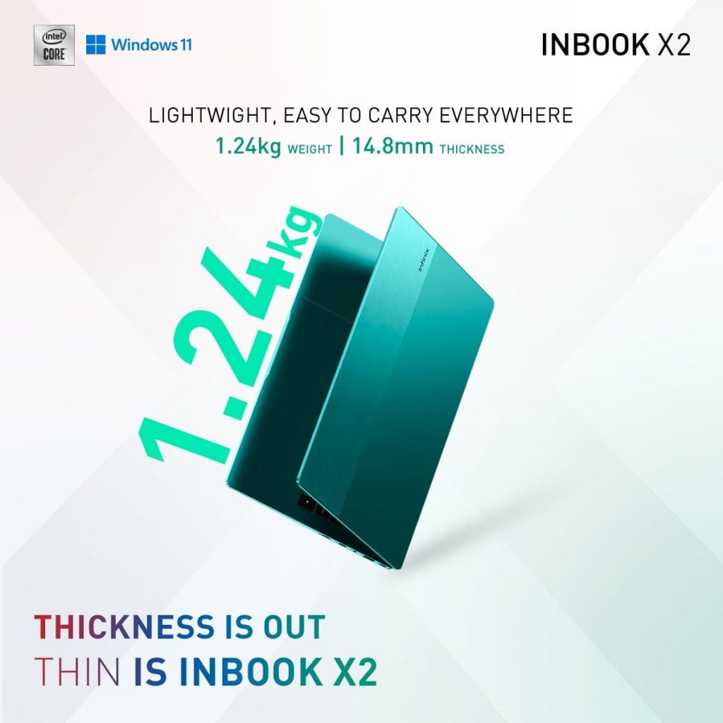وكانت الشركة قد أكدت على أن جهاز Infinix InBook X2 الجديد يتميز بوجود معالج Intel Core I7 من الجيل العاشر ومقترن بسعة تصل حتى 16 جيجابايت من ذاكرة الوصول العشوائي، مثبتًا به أحدث إصدار من نظام التشغيل Microsoft Windows11 ، ومدعوم بهيكل معدني كامل مصنوع من سبائك الألومنيوم، لإضفاء ميزة الوزن الخفيف والهيكل النحيف حيث يزن إجمالي وزنه 1.24 كجم.