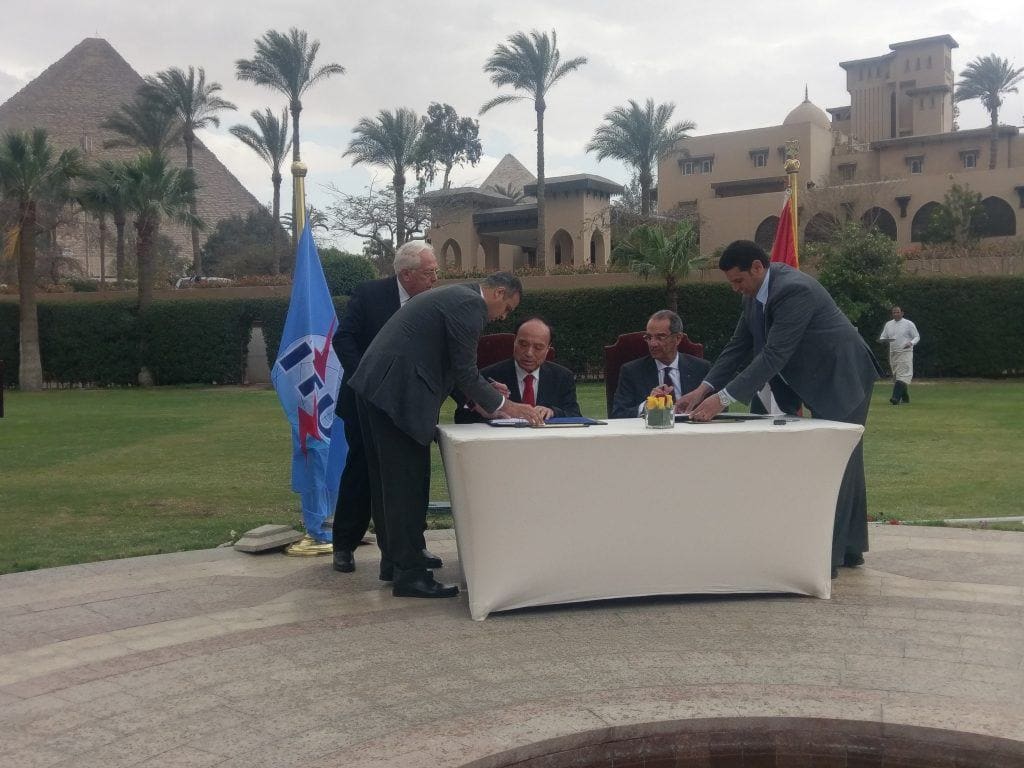 وسط عبق التاريخ وبين احصان اهرامات الجيزة، وقع صباح اليوم الدكتور عمرو طلعت وزير الاتصالات وتكنولوجيا المعلومات مع الأمين العام للاتحاد الدولي للاتصالات اتفاقية استضافة مصر لمؤتمر الاتصالات الراديوية المقرر عقده في شرم الشيخ والمقرر عقده في 21 اكتوبر ويستمر حتى 26 نوفمبر.