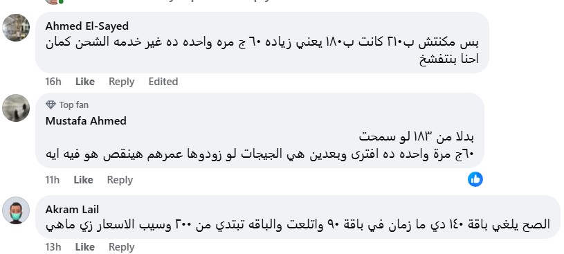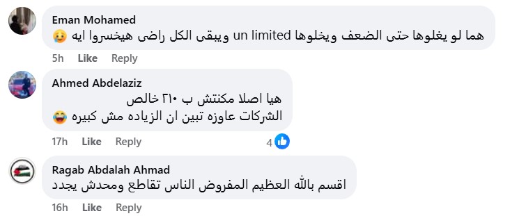 وقد أعرب عدد من المستخدمين- عبر منصات التواصل الاجتماعي السوشيال ميديا- عن استيائهم من تلك الزيادات، مشيرين إلى أن الإنترنت أصبح خدمة أساسية لا غنى عنها في الحياة اليومية، سواء للعمل أو التعليم أو التواصل. وأكد البعض أن تلك الزيادة غير مبررة، خاصةً مع عدم تحسين جودة الخدمة أو سرعة الإنترنت في المقابل.