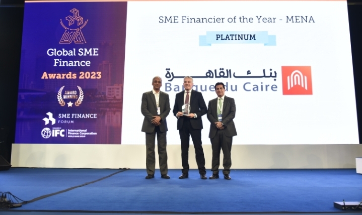 احتفل بنك القاهرة بحصوله على الجائزة البلاتينية كأفضل بنك بالشرق الاوسط وشمال افريقيا فى مجال تمويل الشركات الصغيرة والمتوسطة لعام ٢٠٢٣ كأول بنك مصري يحصل على تلك الجائزة وفقاً لما أعلنه “منتدى تمويل الشركات الصغيرة والمتوسطة Global SME Finance Forum” والذى يتم ادارته من مؤسسة التمويل الدولية IFC، عضو مجموعة البنك الدولى.