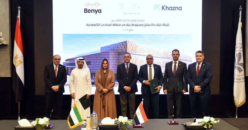 كما وقعت أيضا كل من مجموعة “بنية”، وشركة “خزنة” داتا سنترز مذكرة تفاهم مع منطقة المعادي التكنولوجية، لتخصيص موقع متميز يشغل مساحة 40,000 متر مربع بمنطقة المعادي التكنولوجية لإقامة مركز البيانات فائق القدرة السابق ذكره.