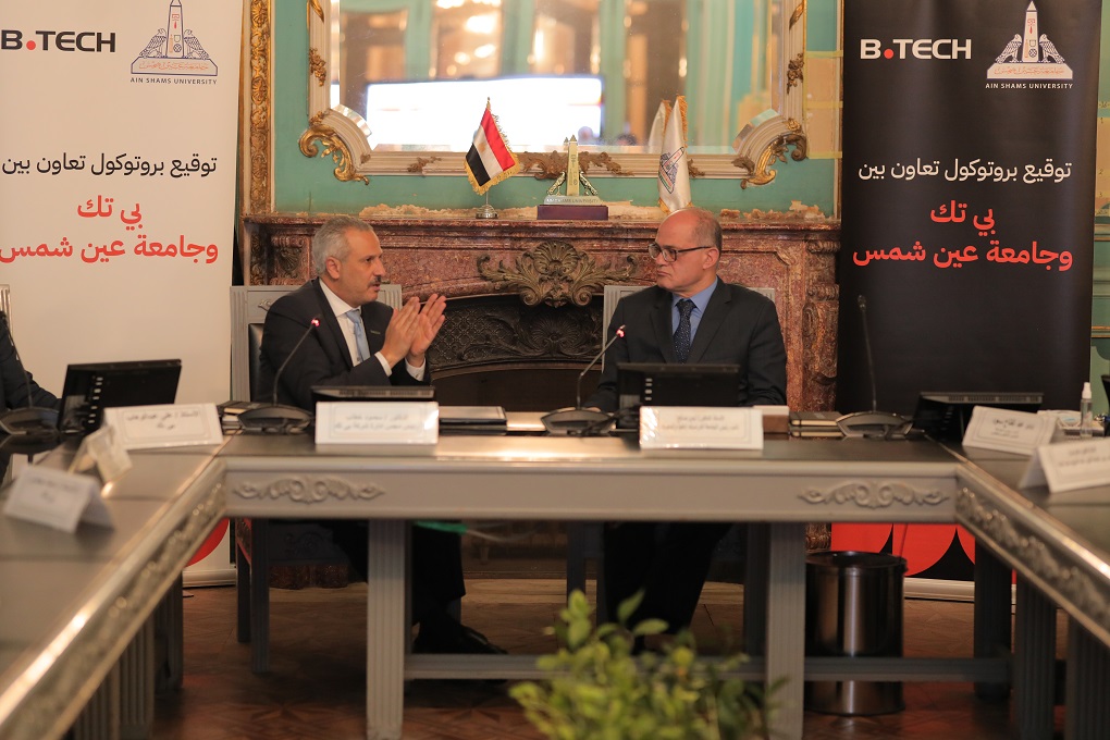 وشهد مراسم توقيع البروتوكول كلٌ من الدكتور محمود المتيني رئيس جامعة عين شمس، والدكتور محمود خطاب رئيس مجلس الإدارة والعضو المنتدب لشركة “بي تك”، وعدد من قيادات الجامعة والشركة .