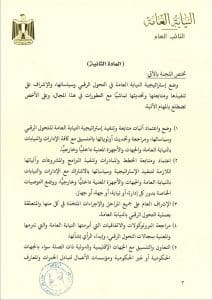 وكان « المستشار النائب العام» قد أمر بوضع الإستراتيجية اتباعًا للمنهج العلمي في هذا المجال، وضمانًا للتقدم فيه مُواكبةً لتوجه الدولة المصرية ومؤسساتها نحو تفعيل سياسة التحول الرقمي؛ تيسيرًا على المواطنين وتحقيقًا للعدالة الناجزة.