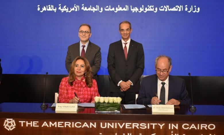 قال الدكتور أحمد دلّال رئيس الجامعة الأمريكية بالقاهرة في كلمته في حفل التوقيع: “نعتز في الجامعة الأمريكية بالقاهرة بثقة الوزارة، التي سمحت لنا على مدار السنوات بالعمل سويًا على عدد من المبادرات والمشروعات المحورية، والتي تخدم رؤانا المشتركة للتنمية الاقتصادية والمجتمعية في مصر. فمن أولويات الاستراتيجية الجامعة، التركيز على الدعم والتأهيل المهني للشباب، وتعزيز قدراته التنافسية في سوق العمل المحلي والدولي، خاصة في مجال الاتصالات وتكنولوجيا المعلومات. ولا يُمكنّا أن نغفل، مع التطورات المتسارعة في ظروف سوق العمل، ضرورة تعزيز هذه المعارف المتخصصة بمهارات في البحث والتحليل والقيادة والعمل التشاركي والقدرة على التكيف والتعلم مدى الحياة.”