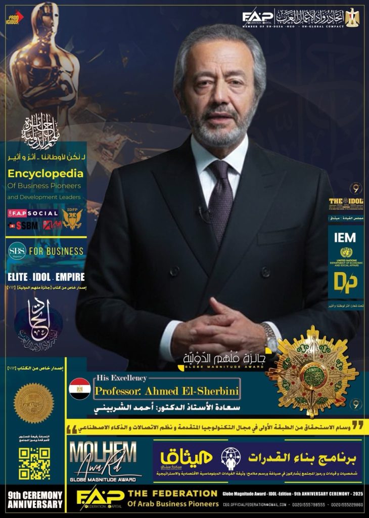 بحضور نُخبة من القادة والمُلهمين ورموز المجتمع وصُنّاع القرار، تشهد العاصمة المصرية القاهرة احتفالية رفيعة المستوى يومي 12 و 13 ديسمبر 2025 لتكريم البروفيسور الأستاذ الدكتور أحمد الشربيني بمنحه قلادة جائزة مُلهِم الدولية ووسام الاستحقاق من الطبقة الأولى في مجال التكنولوجيا المتقدمة ونظم الاتصالات والذكاء الاصطناعي، تقديرًا لمسيرته العلمية والأكاديمية والتنفيذية والدبلوماسية الممتدة لأكثر من أربعة عقود.