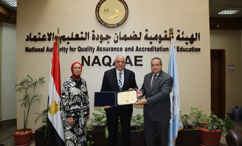 دكتور عبادة سرحان رئيس جامعة المستقبل يتسلم شهادة الاعتماد المؤسسي لجامعة المستقبل من دكتور علاء عشماوي رئيس مجلس إدارة الهيئة القومية لضمان جودة التعليم والاعتماد