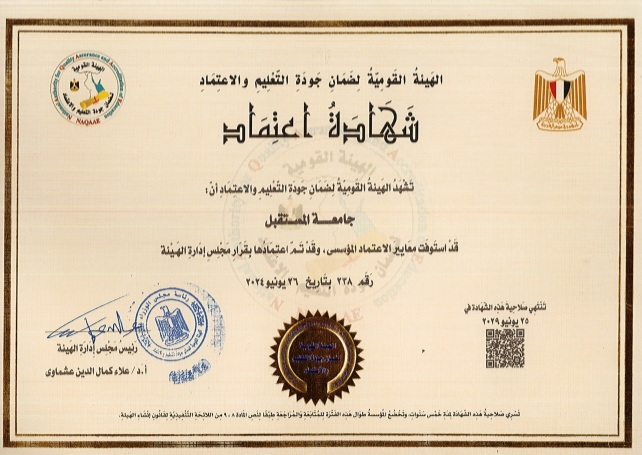 والجدير بالذكر أن جامعة المستقبل هي أول جامعة خاصة في مصر تحصل علي هذا الاعتماد.