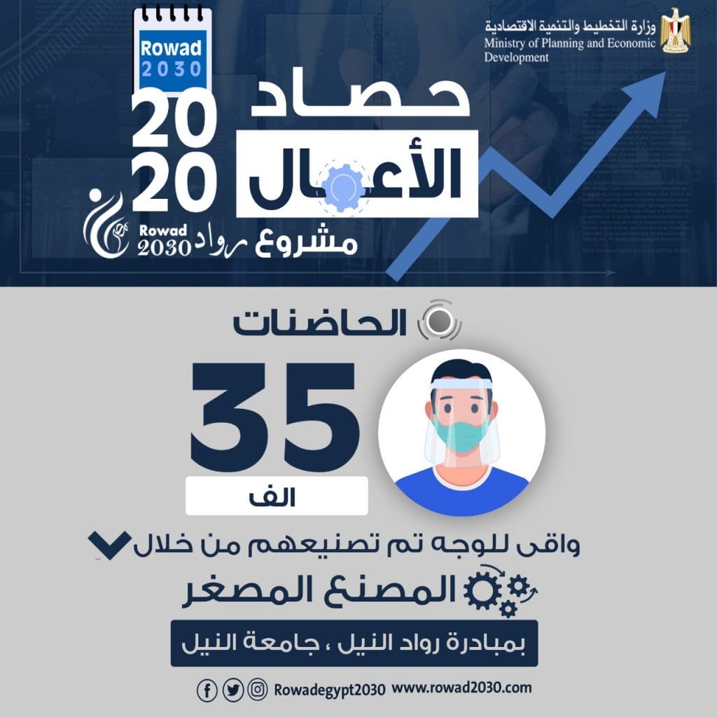 واستعرض التقرير السنوي لمشروع رواد 2030 أبرز ماقام به المشروع خلال العام المنتهي 2020، حيث لفت التقرير إلي المشاركة بحفل تخرج الدفعة الاولى من برنامج الماجستير المهنى فى ريادة الأعمال وإدارة الابتكار بالتعاون الأكاديمى مع جامعتى القاهرة وكامبرديج، فضلًا عن عقد حفل تخرج الدفعة الأولى من برنامج “الشهادة المهنية لريادة الأعمال”المنفذ بالتعاون بين مشروع رواد 2030 التابع للوزارة، والجامعة الألمانية بالقاهرة، حيث تم تخريج 100 من الشباب ممن هم في بداية الطريق، ليصبحوا رواد أعمال ويساهموا بفاعلية في تحقيق أهداف الدولة للتنمية الاقتصادية والاجتماعية، وفي تحقيق أهداف ورؤية مصر 2030، ومن أبرز ماقدمه مشروع رواد 2030 خلال العام كذلك فتح باب التقديم لحاضنة الذكاء الاصطناعى بمقريها بجامعتى الاسكندرية وعين شمس وقبول ستة مشروعات للاحتضان، إضافة إلي عقد عدة جلسات نقاشية فى مجال السياحة بحضور عدد من الخبراء فى هذا المجال وذلك ضمن أنشطة حاضنة مشرق، حيث تم احتضان حوالي 19 مشروع ضمن في الحاضنة مشرق، فضلًا عن قيام المشروع بتصنيع 35 الف واقى للوجه وذلك من خلال المصنع المصغر بمبادرة رواد النيل بجامعة النيل.