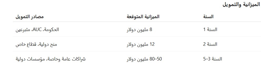 المرحلة 2 (سنة 3–5): تأسيس الكيان المستقل، تنفيذ 10 مشروعات كبرى، إطلاق منتدى السياسات