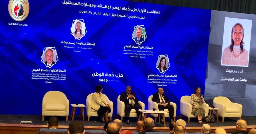 جاء ذلك خلال مشاركتها في جلسة “تعليم الجيل الرابع.. الفرص والتحديات” ضمن فاعليات المؤتمر الأول لحزب حماة الوطن “لمناقشة وظائف ومهارات المستقبل .. نحو مستقبل مستدام”، حيث أدار الجلسة الدكتور أشرف الشيحي وزير التعليم العالي والبحث العلمي السابق،