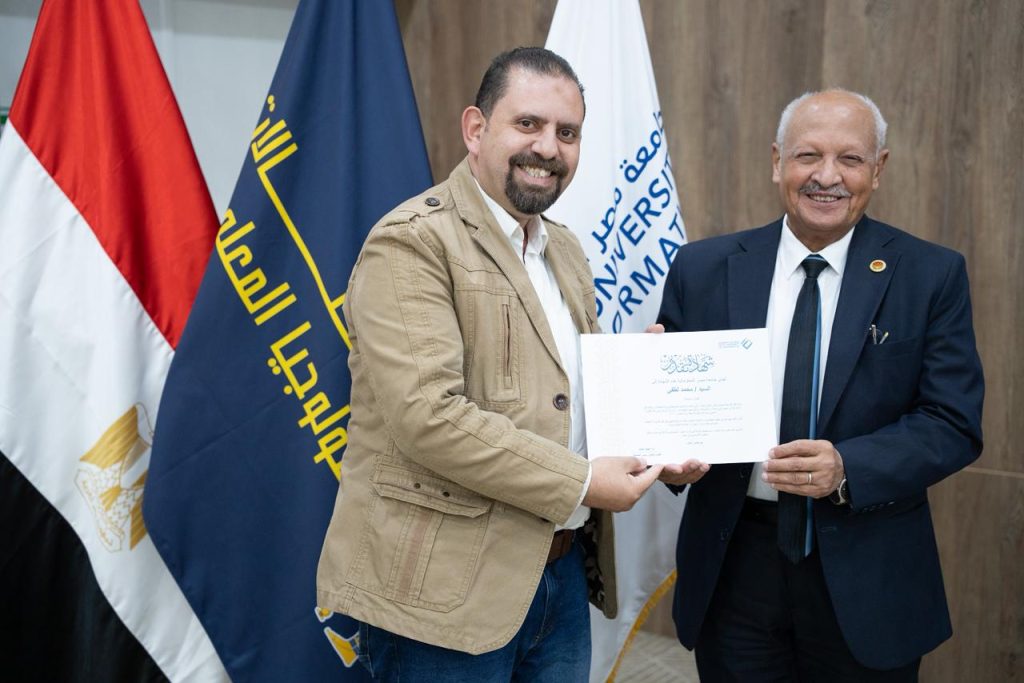 ويأتي هذا التكريم في سياق توجه جامعة مصر للمعلوماتية نحو توطيد علاقاتها مع المؤسسات الإعلامية، وتقدير النماذج المهنية التي تسهم في دعم قضايا التكنولوجيا والتحول الرقمي، بما يعزز من نشر الثقافة الرقمية وترسيخ مكانة مصر كمركز إقليمي في هذا المجال.