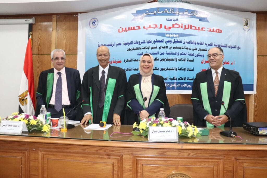 ناقشت كلية الإعلام جامعة القاهرة، رسالة ماجستير للباحثة هند عبدالراضي رجب، وكانت الرسالة بعنوان «دور القنوات التليفزيونية المصرية العامة والخاصة في تشكيل وعي الجمهور نحو المشروعات القومية مصر الرقمية نموذجًا»، وتم منح الباحثة درجة الماجستير بتقدير ممتاز.