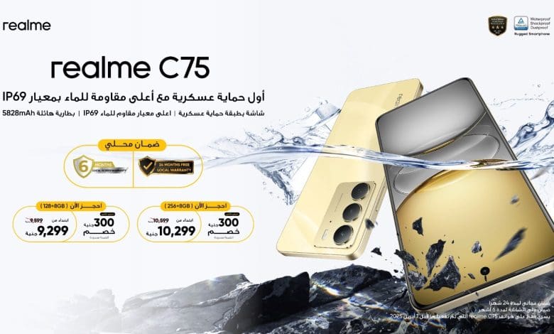 أعلنت شركة ريلمي العلامة التجارية الأسرع نموًا في سوق الهواتف الذكية عالميًا، عن إطلاق هاتف realme C75، المُصنع بفخر في مصر حيث يتميز الهاتف بتصنيف IP69 الأعلى في مقاومة الماء والغبار، حيث يمكن لهاتف realme C75 الصمود أمام الماء حتى عمق 2 متر ، وحماية عسكرية حيث انه مقاوم للخدوش بنسبة 400% مقارنة بمنافسيه، إلى جانب بطارية قوية تدوم طويلًا، مع ضمان محلي لمدة 24 شهرًا وضمان شاشة لمدة 6 أشهر ساري حتى 1 أبريل. وتتعاون ريلمي مع لاعب كرة القدم المميز زيزو ليكون الوجه الإعلاني للهاتف مما يضفي عليه لمسة من الفخامة ويعزز مكانته الاستثنائية.