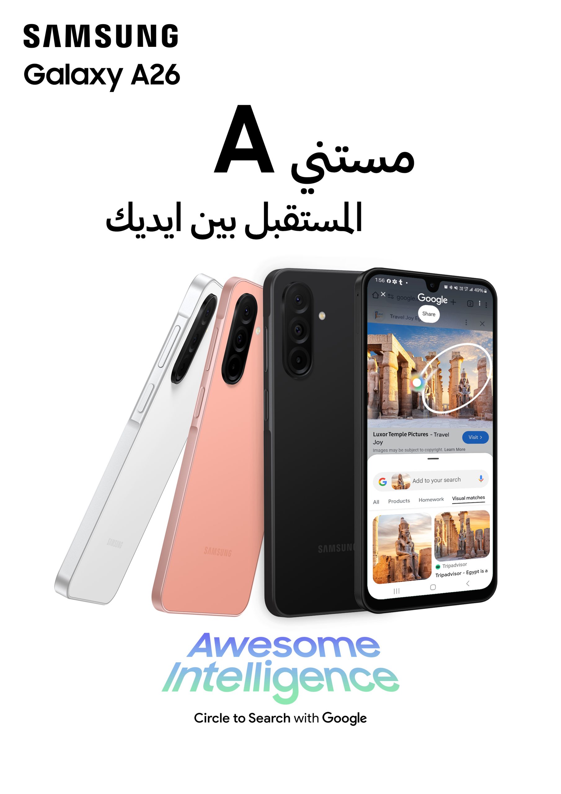 أعلنت شركة سامسونج إلكترونيكس عن إطلاق أجهزة ‘Galaxy A56 5G’ و ‘Galaxy A36 5G’ و ‘Galaxy A26 5G’ عالميًا، في خطوة تمثّل نقلة نوعية تتيح لمزيد من المستخدمين الاستفادة من إمكانات الذكاء الاصطناعي المتقدّم على الهواتف الذكية. وتُعد هذه السلسلة الأولى ضمن فئة ‘Galaxy A’ التي تتضمّن ميزة ‘Awesome Intelligence’ لتقدم للمستخدمين تجربة ذكاء اصطناعي شاملة وسهلة الاستخدام، عبر أدوات ذكية قوية تساعد في تحسين تجربة البحث والتفاعل مع الجهاز، بالإضافة إلى تُقديم تجربة بصرية مذهلة.