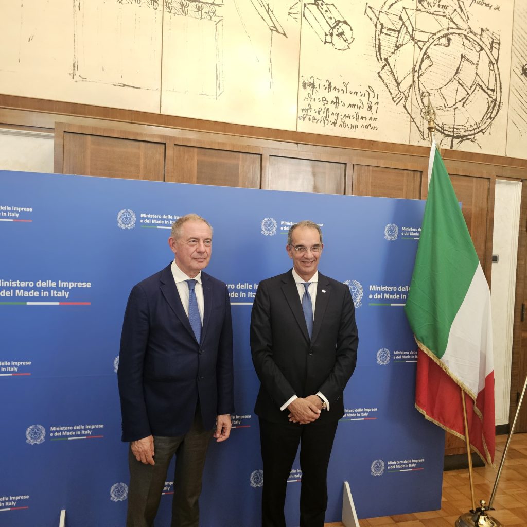 التقى الدكتور/ عمرو طلعت وزير الاتصالات وتكنولوجيا المعلومات، السيد/ أدولفو أورسو وزير الأعمال والصناعة الإيطالى. فى العاصمة الإيطالية روما، بحضور السفير/ بسام راضى سفير مصر فى إيطاليا، تناول اللقاء بحث تعزيز التعاون المشترك بين مصر وإيطاليا فى مجالات الذكاء الاصطناعى.