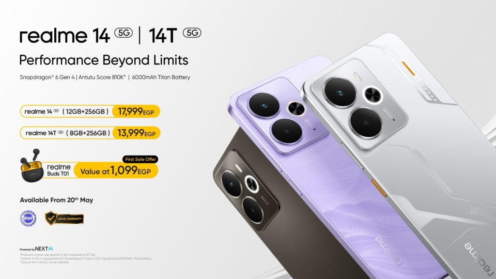 ويحمل هاتف realme 14 5G تصميمًا مستوحى من عالم “الميكا” الخيالي، في حين يأتي realme 14T بخيارين من الألوان الجذابة: الأرجواني البراق والأسود البركاني. كما يتمتع الهاتفان بمقاومة عالية للماء والغبار وفق معيار IP69، مما يجعلهما مناسبين للاستخدام في ظروف متعددة.
