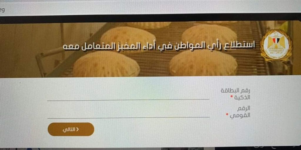 ” استطلاع رأى المواطن في المخابز” وبمجرد الضغط عليها سيتم ادخال الرقم القومي، ورقم بطاقة التموين وتبدأ عملية التقييم، على أن يقوم المواطن بتقييم اداء المخبز المتعامل معه.