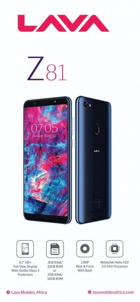 Z81 هو الهاتف الذكي الذي أطلقته شركة لاﭬـا مؤخراً. استمرارًا في إرث عائلة Z ، سيقدم Z81 أيضًا شاشة عرض كاملة 18: 9 و يحتوي علي مميزات أخرى مثيرة.يتميز Z81 بتصميم نحيف وأنيق يبلغ سمكه الإجمالي حوالي 7.8 ملم. يأتي الهاتف بخيارات ألوان الذهب والأسود والأزرق ليناسب ذوقك وأسلوبك.