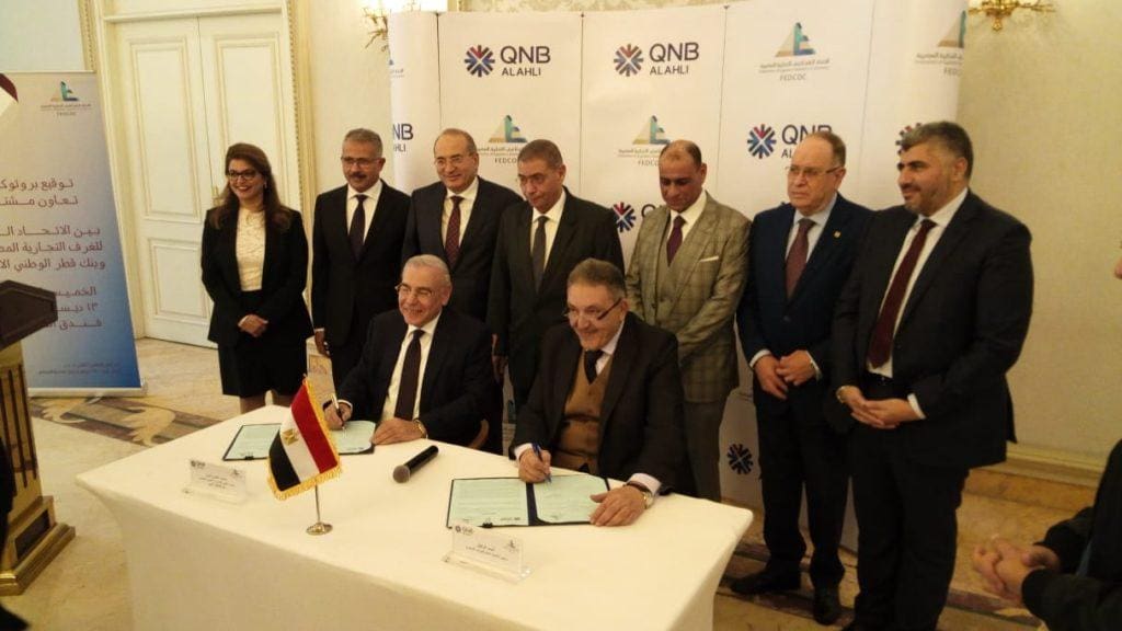في إطار دور الاتحاد العام للغرف التجارية الهادف إلي تطوير وتحديث ورقمنة منظومة التجارة الداخلية وتعزيز الشمول المالي والمدفوعات الرقمية وريادة الأعمال التكنولوجية، و بنك QNBالأهلي كأحد البنوك الرائدة و المساهمة في الاقتصاد المصري و الذى يولى عناية خاصة لمجال دعم وتمويل المشروعات الصغيرة والمتوسطة ومتناهية الصغر و الشمول المالي ، تم اليوم توقيع مذكرة تفاهم بين الاتحاد العام وبين بنك QNB الأهلي وقام بالتوقيع علي المذكرة أحمد الوكيل رئيس الاتحاد العام للغرف التجارية ومحمد الديب رئيس مجلس الإدارة والعضو المنتدب لبنك QNB الأهلي.
