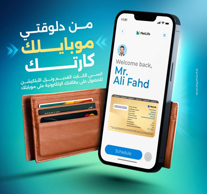 أعلنت شركة متلايف لتأمينات الحياة على تطبيق مبادئ الإستدامة وتطوير آليات ,وأساليب العمل عن إتاحت بطاقات تعريف إلكترونية لعملاء التأمين الطبي كبديل لبطاقة التأمين الطبي البلاستيكية، لتصبح بذلك أول شركة تأمين تطلق هذه الوسيلة الميسرة بهدف تسهيل وسرعة حصول المؤمن عليهم على الخدمات الطبية، والحفاظ على البيئة من خلال التخلص الكامل من البطاقات البلاستيكية.