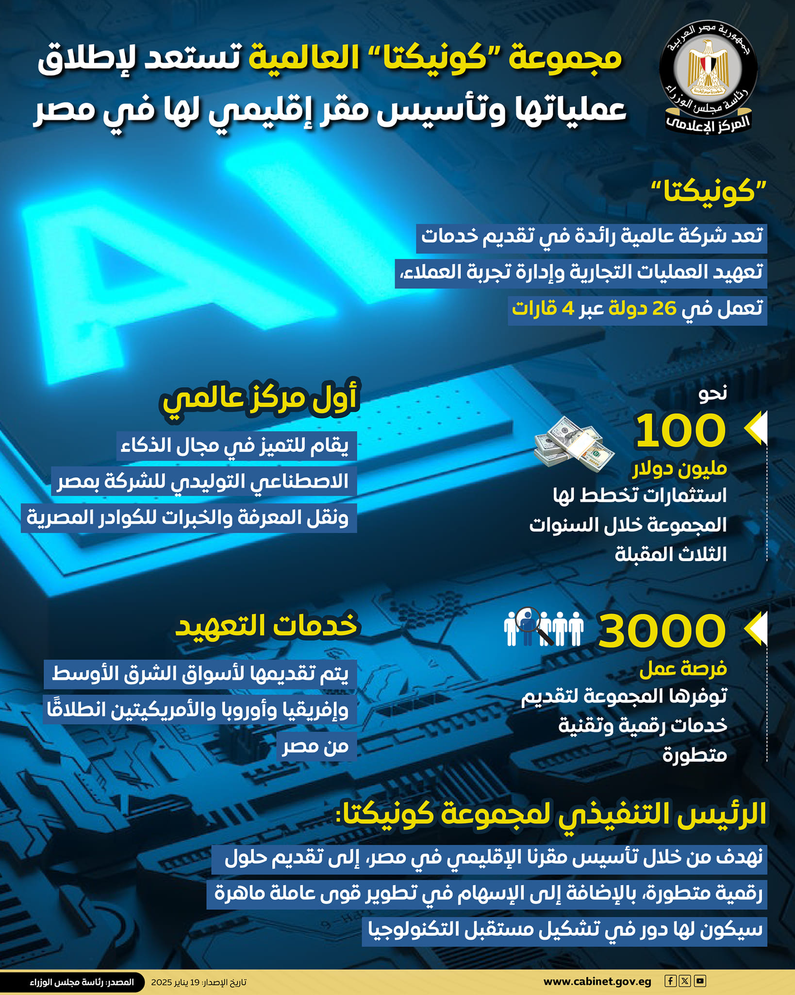 مجلس الوزراء ينشر انفوجراف لشركة كونيكتا العالمية بعد تأسيس مكتبها في مصر