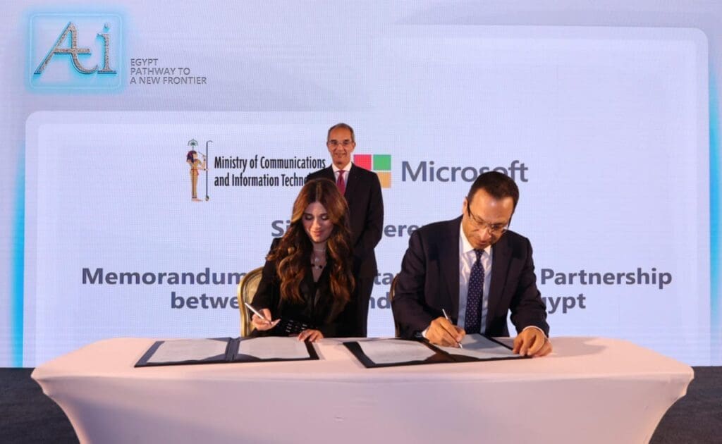 وقع مذكرة التفاهم المهندس/ رأفت هندى نائب وزير الاتصالات وتكنولوجيا المعلومات لشئون البنية التحتية، والأستاذة/ ميرنا عارف المدير العام لمايكروسوفت مصر.
