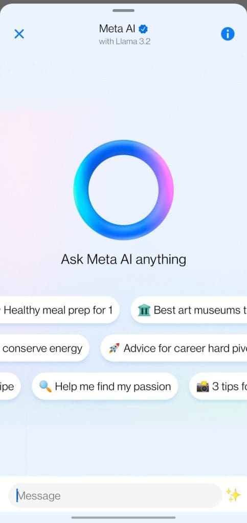ويمكن الوصول إلى ميزة “Meta AI” بسهولة من خلال رمز الدائرة الزرقاء الموجود في مجموعة التطبيقات التابعة لشركة “Meta”، وهي “Facebook” و”Instagram” و”WhatsApp” و”Messenger”، من دون الحاجة إلى أيّ تسجيل مسبق. ويمكن استخدام هذه الميزة في مجموعات الدردشة ضمن التطبيقات المذكورة، من خلال طباعة “@Meta AI” بكلّ بساطة للاستعانة بمساعد الذكاء الاصطناعي لإجراء بحث سريع، مناقشة الأفكار أو التخطيط مع الأصدقاء. فيمكن على سبيل المثال للمستخدمين، الذين يعتزمون القيام برحلة خلال فصل الربيع مع عائلاتهم ويبحثون عن جزر لا تبعد عنهم أكثر من ستّ ساعات جواً من دولة الإمارات، ذكر “@Meta AI” في دردشة المجموعة للحصول فوراً على قائمة من الخيارات التي تلبّي تطلعاتهم وتحاكي تفضيلاتهم ومناقشتها ضمن المجموعة.