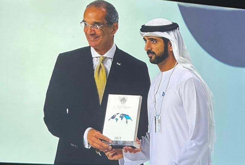 تسلم اليوم الدكتور عمرو طلعت وزير الاتصالات وتكنولوجيا المعلومات جائزة التميز الحكومى العالمية من الشيخ حمدان بن محمد بن راشد آل مكتوم ولى عهد دبى ورئيس المجلس التنفيذى لإمارة دبى، والتى فازت بها مصر عن فئة التحول الحكومى الرقمى ممثلا فى مشروع العاصمة الإدارية الجديدة، جاء ذلك فى ختام فعاليات القمة العالمية للحكومات بدبى بحضور الشيخ/ محمد بن راشد آل مكتوم نائب رئيس الإمارات رئيس مجلس الوزراء حاكم دبى.