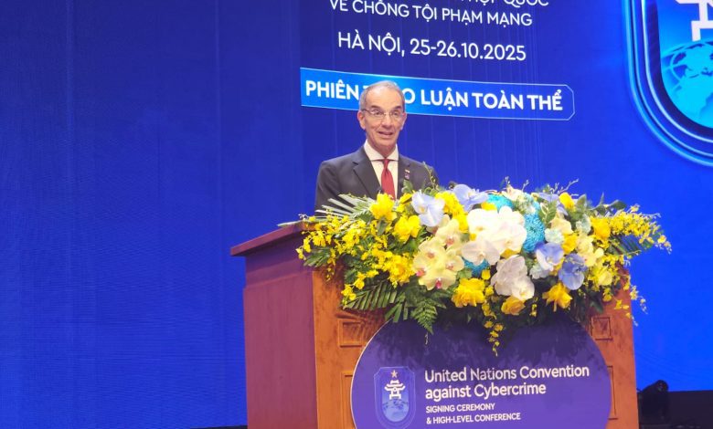 وقعت مصر على اتفاقية الأمم المتحدة لمكافحة الجريمة السيبرانية خلال فعاليات المؤتمر الذى استضافته العاصمة الفيتنامية هانوى؛ حيث قام بالتوقيع الدكتور عمرو طلعت وزير الاتصالات وتكنولوجيا المعلومات، رئيس وفد مصر رفيع المستوى المشارك فى مراسم التوقيع التى شهدها لوونج كونج رئيس جمهورية فيتنام الاشتراكية، و أنطونيو جوتيريش الأمين العام للأمم المتحدة، والدكتورة غادة والى المديرة التنفيذية لمكتب الأمم المتحدة المعنى بالمخدرات والجريمة، والسفير هانى مصطفى سفير جمهورية مصر العربية بجمهورية فيتنام، ورؤساء وفود الدول المشاركة في المؤتمر.