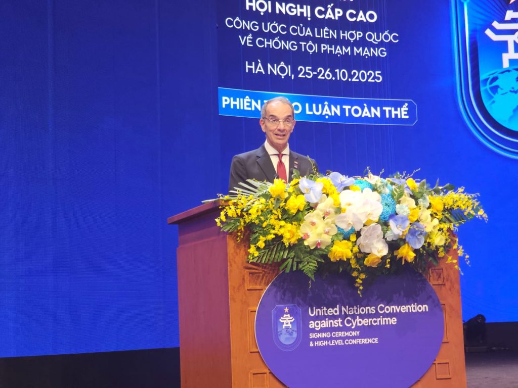 وقعت مصر على اتفاقية الأمم المتحدة لمكافحة الجريمة السيبرانية خلال فعاليات المؤتمر الذى استضافته العاصمة الفيتنامية هانوى؛ حيث قام بالتوقيع الدكتور عمرو طلعت وزير الاتصالات وتكنولوجيا المعلومات، رئيس وفد مصر رفيع المستوى المشارك فى مراسم التوقيع التى شهدها لوونج كونج رئيس جمهورية فيتنام الاشتراكية، و أنطونيو جوتيريش الأمين العام للأمم المتحدة، والدكتورة غادة والى المديرة التنفيذية لمكتب الأمم المتحدة المعنى بالمخدرات والجريمة، والسفير هانى مصطفى سفير جمهورية مصر العربية بجمهورية فيتنام، ورؤساء وفود الدول المشاركة في المؤتمر.