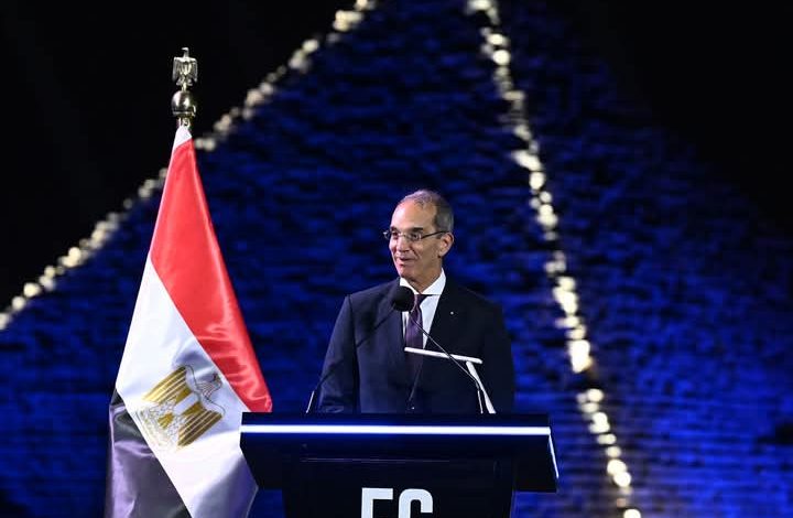 واستهل وزير الاتصالات وتكنولوجيا المعلومات كلمته، بالترحيب برئيس مجلس الوزراء، والسادة الوزراء، وأبناء قطاع الاتصالات وتكنولوجيا المعلومات في مصر، في حفل إطلاقِ خدماتِ الجيل الخامس في مصر، وقال: “ربما ونحن في حضرةِ الأهرامات… هذا الرمزُ الخالدُ للتقدمِ الإنساني، يسوغ لي أن أدعو حضراتَكم لتأملِ مسيرةِ قطاعِ الاتصالات وتكنولوجيا المعلومات في مصر… قطاعٌ وإن بدا قطاعاً شاباً فتياً، بيد أن جذورَه تمتدُ إلى أكثرِ من مائةٍ وسبعينَ عاماً… عندما كان التواصلُ الإنساني قد تطورَ إلى تقنيةِ البرق – أو ما درجنا على تسميتِه بالتلغرافِ، فتأسست الشركةُ الشرقيةُ للتلغراف في عامِ 1854، وأُطلِق أولُ خطٍ للتلغرافِ بين القاهرة والإسكندرية”.