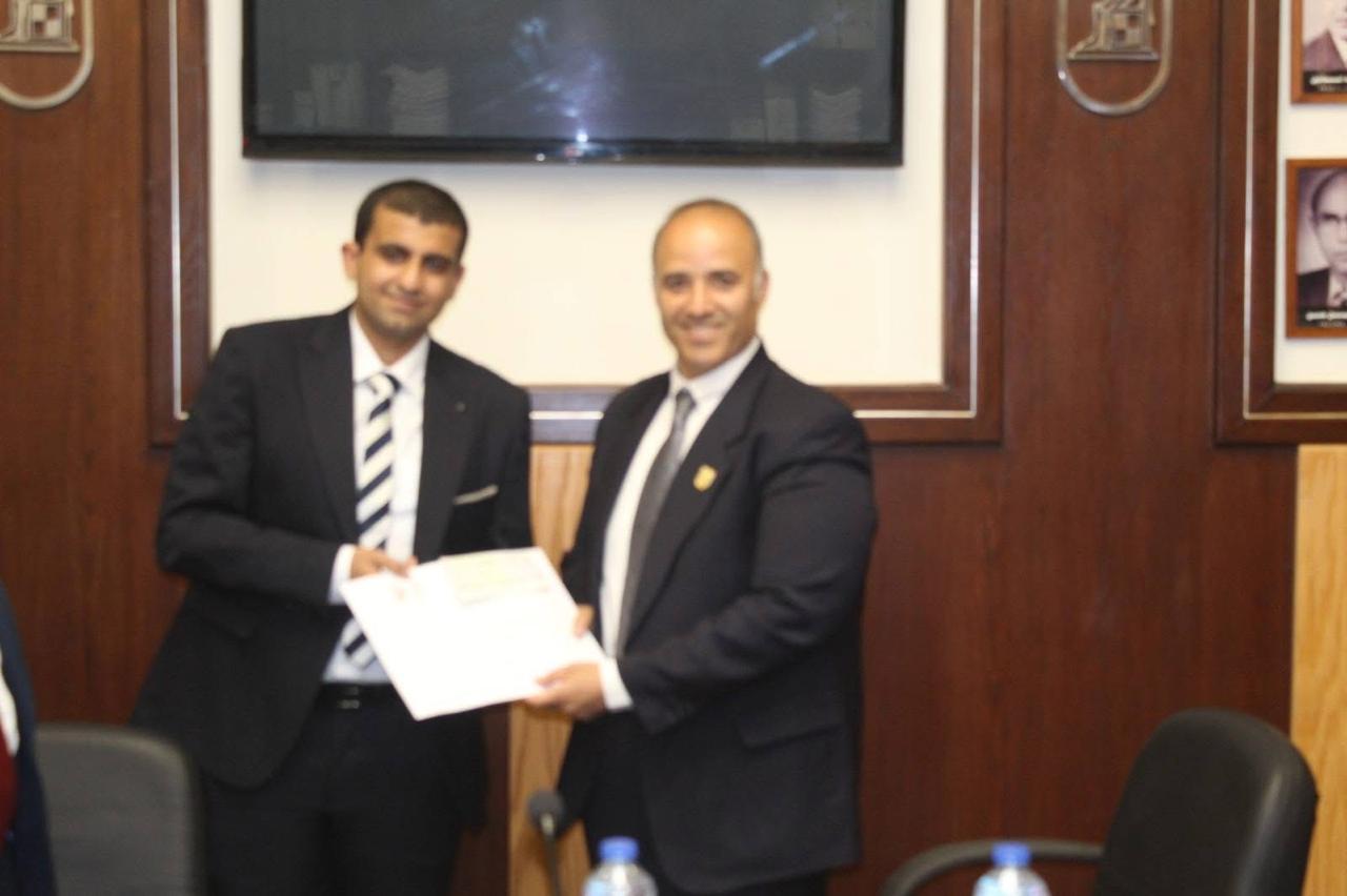 كما وجه  كلمة لأوائل الخريجين الحاصلين على الجائزة بضرورة العمل على دوام التفوق وخدمة الوطن متمنيا لهم التوفيق والسداد في حياتهم العملية والشخصية متخذين من مسيرة المرحوم الدكتور طارق كامل القدوة والمثل.