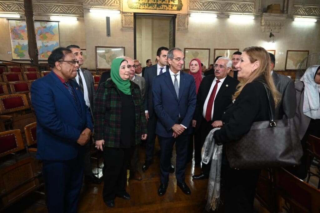 بحث الدكتور/ عمرو طلعت وزير الاتصالات وتكنولوجيا المعلومات، والدكتورة/ نيفين القباج وزيرة التضامن الاجتماعى آليات دعم الجمعية الجغرافية المصرية، والتعاون فى رقمنة مقتنياتها ودعمها فى إعدادها للمؤتمر الجغرافى الدولى المزمع عقده فى عام 2025. وذلك خلال زيارتهما لمقر الجمعية الجغرافية المصرية التى تعد أقدم جمعية جغرافية خارج أوروبا والأمريكتين. وكان فى استقبالهما الدكتور/ محمد السديمى رئيس الجمعية وأعضاء الجمعية. وبحضور الدكتورة / هدى بركة مستشار وزير الاتصالات وتكنولوجيا المعلومات لتنمية المهارات التكنولوجية.